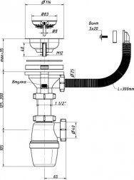 Сифон 1 1/2 40 с гибкой трубой А-40029 (О)