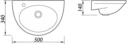 Рукомойник "Уют" - полукруглый умывальник первой величины с отверстием под смеситель слева. Для крепления к стене используются комплекты креплений умывальника (шпилька-шуруп 6х60 и дюбель 8х51).
